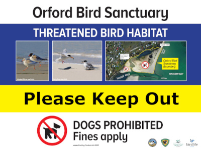 The Orford Bird Sancturay is a Dog Prohibited Area at all times of the year.